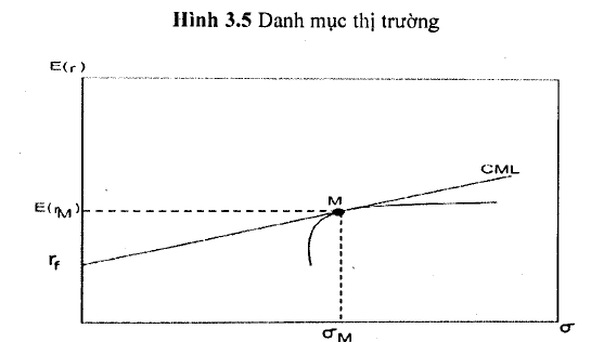 Do tất cả các nhà đầu tư có cùng đường biên hiệu quả và có tồn tại I tài sản phi rủi ro nên danh mục đầu tư tối ưu mà các nhà đầu tư lựa chọn sẽ giống nhau và đó là danh mục thị trường. Tất cà các nhà đầu tư sẽ lựa chọn nắm giữ DMĐT của những tài sản rủi ro đại diện cho những tài sản trong danh mục thị trường M. Đê đơn giản, chúng ta có thể coi tất cả tài sản rủi ro như là các cổ phiếu. Tỷ lệ của mỗi chứng khoán trong danh mục thị trường bằng giá trị thị trường của cổ phiếu (giá mỗi cổ phiếu nhân số cồ phiếu trên thị trường) chia tổng giá tri thị trường cúa tất cả cổ phiếu. Nói cách khác, danh mục M được xem là danh mục thị trường khi tỷ lệ của mỗi chứng khoán ưong danh mục đỏ bằng với giá trị thị trường của mọi chứng khoán (giá chứng khoán nhân với số lượng cồ phiếu còn lưu hành) chia cho tổng giá trị thị trường của tất cả chứng khoán. Mô hình CAPM hàm ý rằng khi nhà đầu tư cá nhân cố gắng tối ưu hóa danh mục đầu tư của họ, mỗi người đều sở hữu một danh mục với tỷ trọng của mỗi tài sản đơn bằng tỷ trọng trên danh mục thị trường.