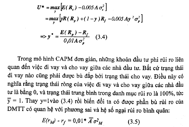 Trong đó, ơ2m là phương sai của DMTT và A là hệ số ngại rủi ro của nhà đầu tư. Vỉ M là DMĐT tối ưu nằm trên đường biên hiệu quả nên a2ỵ là rủi ro hệ thống.