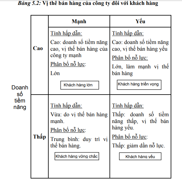 Các khách hàng được phân loại theo doanh số tiềm năng và vị thế bán hàng của công ty đối với khách hàng đó.