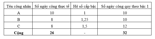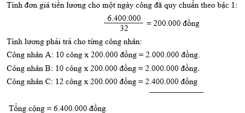 Một tổ gồm 3 công nhân, hoàn thành một công việc trong tháng lương trả cho cả tổ là 6.400.000 đồng. Hãy tính lương của từng người.