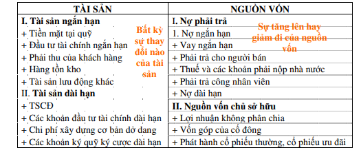 - Nếu các khoản mục bên phần tài sản giảm hoặc các khoản mục bên phần nguồn vốn tăng thì đó chính là diễn biến nguồn vốn trong kỳ nên được xếp vào cột nguồn vốn.