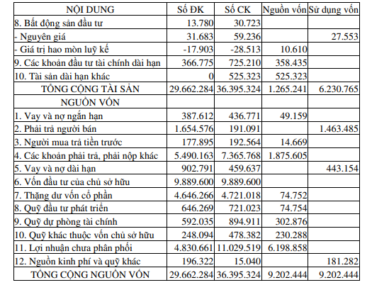 2.2.Bảng phân tích diễn biến nguồn vốn và sử dụng vốn