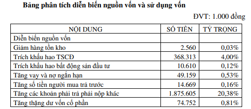 Bảng phân tích diễn biến nguồn vốn và sử dụng vốn