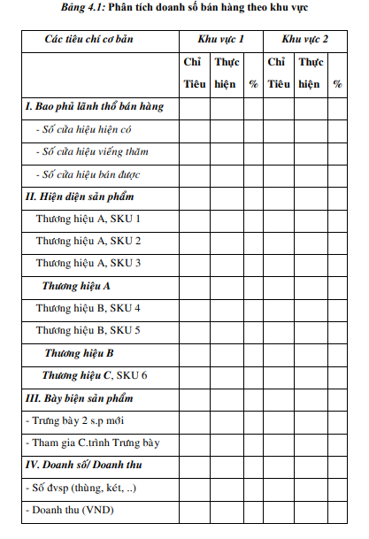 – Doanh số bán hàng theo sản phẩm, ngành kinh doanh.