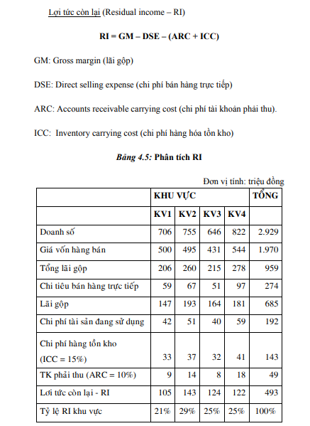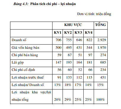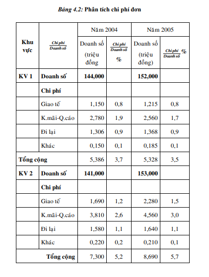– Phân tích chi phí đơn: so sánh các loại chi phí của nhân viên bán hàng giữa các khu vực, thông thường tính theo tỷ lệ % giữa chi phí và doanh số.