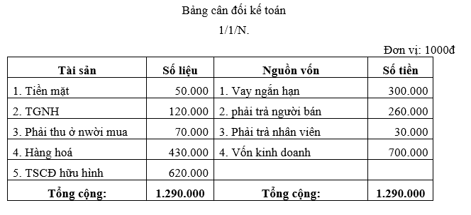 Trong quý I/N có các nghiệp vụ kinh tế phát sinh như sau: (ĐV:1000đ)