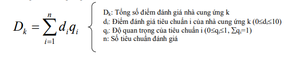 Để thuận tiện cho việc xếp loại nhà cung ứng, có thể sử dụng mô hình lượng hóa đánh giá nhà cung ứng: