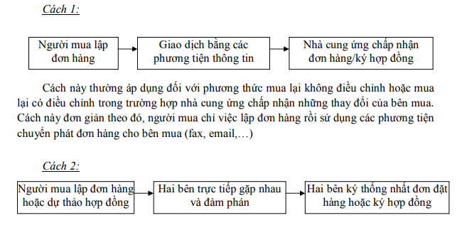 Đặt hàng, ký hợp đồng mua nhằm tạo nên hình thức pháp lý của quan hệ mua bán. Có thể có 2 cách tiến hành: