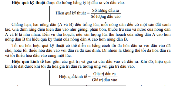 Hiệu quả kỹ thuật được đo lường bằng tỷ lệ đầu ra với đầu vào.