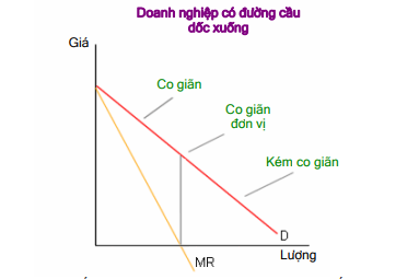Biểu đồ dưới đây minh họa mức giá và lượng để đối đa hóa lợi nhuận của doanh nghiệp có đường cầu dốc xuống. Như đã đề cập ở trên, đường MR và MC cắt nhau sẽ xác định mức sản lượng Qo, khi đó giá Po được xác định trên đường cầu. Từ khi ATCo nhỏ hơn Po, cho nên vùng tô đậm trong biểu đồ chính là lợi nhuận. Trong trường hợp này doanh nghiệp có lợi nhuận dương và lợi nhuận đạt được là cực đại. Điều đó có nghĩa doanh nghiệp sẽ đạt được mức lợi nhuận nhỏ hơn nếu như quyết định mức sản lượng sản xuất nhỏ hơn hoặc lớn hơn Qo.