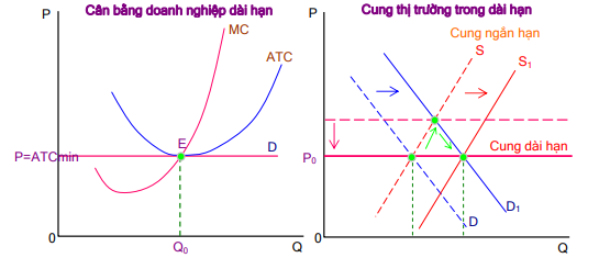 Vì vậy, cân bằng dài hạn diễn ra khi doanh nghiệp có lợi nhuận kinh tế bằng không. Khi cân bằng dài hạn diễn ra thì sức hấp dẫn ngành không còn nữa bởi tỷ suất lợi nhuận ngành tương tương với những ngành khác.