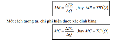 Như đã đề cập trước đây, một doanh nghiệp tối đa hóa lợi nhuận sẽ sản xuất ở mức sản lượng mà ở đó doanh thu biên bằng với chi phí biên. Doanh thu biên được xác định bằng: