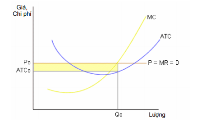Nếu doanh nghiệp có lợi nhuận thì tỷ suất lợi nhuận trên đầu tư sẽ lớn hơn tỷ suất so với các lựa chọn đầu tư khác của doanh nghiệp. Trong trường hợp này, doanh nghiệp quyết định sản xuất với mức sản ượng Qo. Trong khi đó, lợi nhuận kinh tế này sẽ khích thích thêm các doanh nghiệp mới gia nhập vào ngành. Chúng ta sẽ đề cập chi tiết hơn sự tác động của các doanh nghiệp mới gia nhập ngành ảnh hưởng đến giá và lượng ở phần sau.