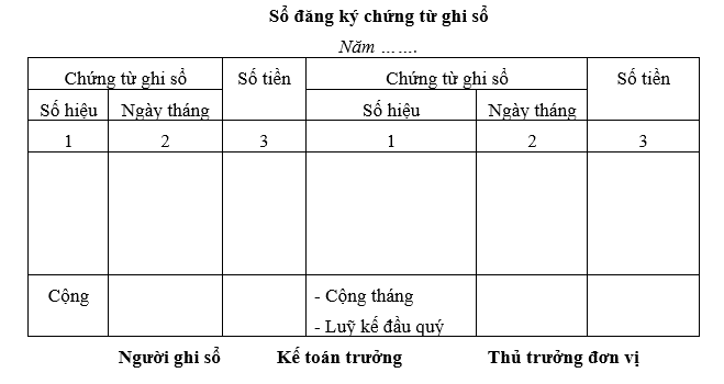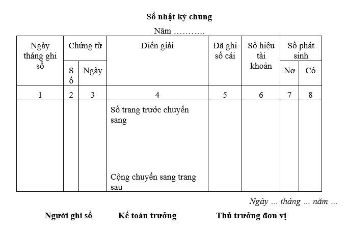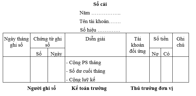 - Sổ kết cấu kiểu một bên (xem mẫu Nhật kí chung)