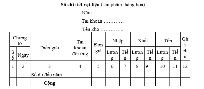 - Sổ vật tư: được sử dụng để theo dõi tình hình biến động của các loại vật tư trong đơn vị như sổ vật liệu, sổ công cụ dụng cụ, sổ hàng hoá thành phẩm…