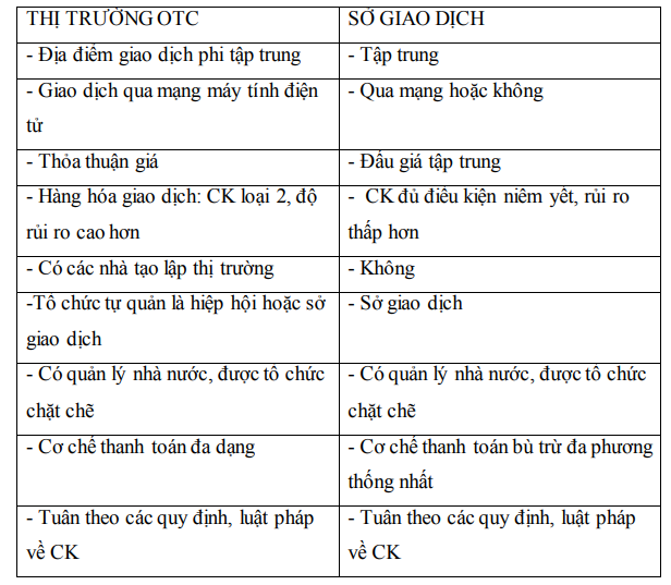 SO SÁNH THỊ TRƯỜNG OTC VỚI THỊ TRƯỜNG TẬP TRUNG (SGD)