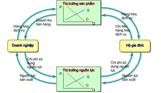 Biểu đồ luân chuyển cũng minh họa một khía cạnh khác mà chúng ta cần phải lưu ý: hộ gia định là nguồn cung trên thị trường nguồn lực và doanh nghiệp là nguồn cầu. Lưu ý rằng vai trò này là ngược lại đối với thị trường sản phẩm.