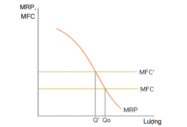 Như biểu đồ trên cho thấy, mức sử dụng nguồn lực tối ưu diễn ra ở mức sử dụng nguồn lực mà ở đó MRP = MFC. Khi đó, mức sử dụng nguồn lực tối ưu tại Q0. Nếu MFC tăng lên lượng cầu nguồn lực tại mỗi mức giá nguồn lực cho nên MRP được xem là đường cầu nguồn lực của doanh nghiệp.