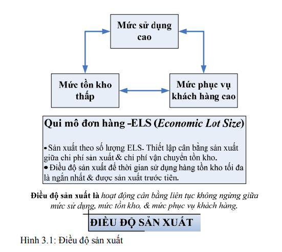 Điều độ sản xuất là phân bổ công suất có sẵn (thiết bị, lao động, nhà máy) cho việc sản xuất sản phẩm cần thiết. Mục tiêu là sử dụng công suất sẵn có hiệu quả và mang lại lợi ích cao nhất. Thực hiện một kế hoạch điều độ sản xuất là một quá trình tìm sự cân bằng giữa nhiều mục tiêu đối kháng nhau: