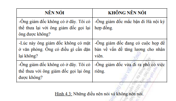 -Phải biết từ chối những cuộc đàm thọai mà giám đốc không muốn có.