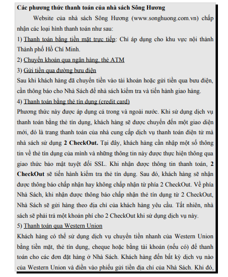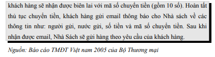 Dưới đây là ví dụ về một doanh nghiệp bán lẻ qua mạng sử dụng một số hình thức thanh toán điện tử điển hình tại Việt Nam: