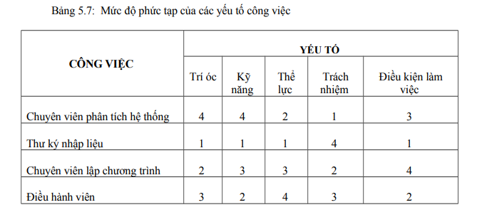 - Mức độ phức tạp của công việc.