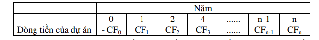 Đau tư dài hạn cũng có nghĩa là bỏ tiền ra ở hiện tại để hy vọng trong tương lai sẽ thu được các khoản thu nhập nhiều hơn. Do vây, trên góc đô tài chính, đau tư là môt quá trình phát sinh các dòng tiền chi ra và dòng tiền thu vào. Môt dự án đau tư cũng có thể được mô tả và định lượng được dưới dạng các dòng tiền, chẳng hạn môt dự án đau tư A bỏ vốn đau tư ngay môt lan là CF0 và dự kiến thu được các khoản tiền ở các năm trong tương lai CFi, CF2, CF3 .. .CFn-i, CFn. Dự án đó có thể được mô tả dưới dạng sau: