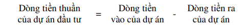 Từ những vấn đề nêu trên có thể thấy, chi phí và thu nhập của môt dự án đầu tư tạo thành dòng tiền ra và dòng tiền vào của dự án, sự chênh lệch giữa dòng tiền vào và dòng tiền ra hợp thành dòng tiền thuần của dự án đầu tư và có thể xác định bằng công thức sau: